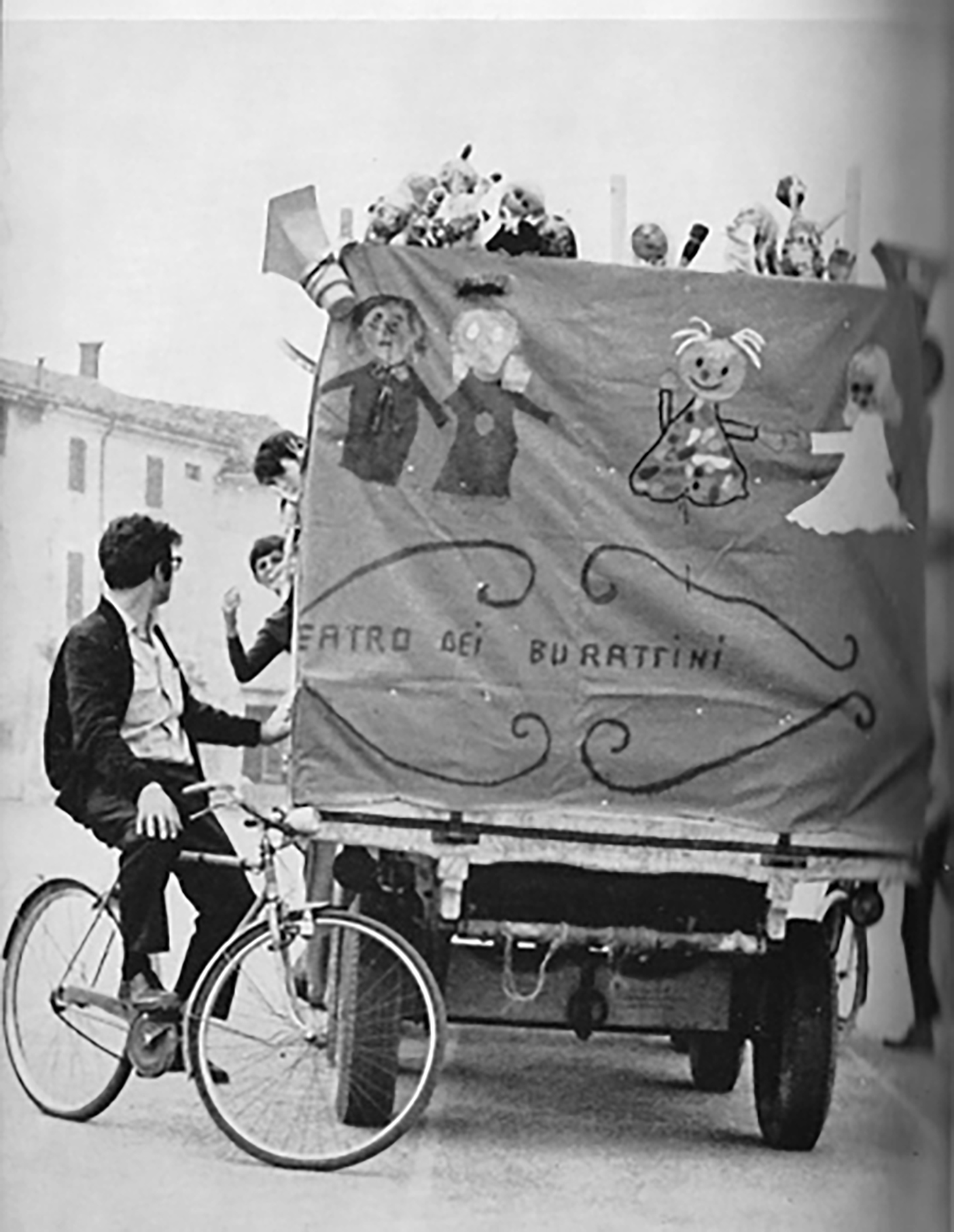 En Corso Taranto, los niños de primaria habían construido, como sucederá años después en Sissa y en otros lugares, un laboratorio abierto en el sótano de su escuela. Lo primero, en todos los proyectos de Scabia, siempre consiste en preparar el espacio, en volverlo otro y animarlo: hacer que algo nazca, que algo nuevo emerja al mundo del sótano-laboratorio. Preparación de títeres, escenarios, maquetas de las calles y las casas. Entrevistas y reconstrucción de la vida cotidiana de los niños en el barrio, su historia, su relación con la fábrica y con la ciudad: con los pueblos de origen de los papás migrantes. Imaginar, luego, cómo poner en escena un día en el barrio: confluencia del tiempo, de los espacios y de las prácticas de cada niño en un solo esquema de espectáculo. Desde el despertar hasta el soñar; y de vuelta a la realidad, a la basura, al barrio lleno de basura: nieva basura sobre las calles y las casas. Desde este esquema imaginado y compuesto por todos los niños, se improvisa; de las improvisaciones se fijan ulteriormente algunas escenas, se aprenden, se vuelven a actuar. El “texto” final contiene toda esta estratificación de búsquedas, diálogos y juegos colectivos. Hasta el desenlace imprevisto, el veto y el desborde que sabemos.